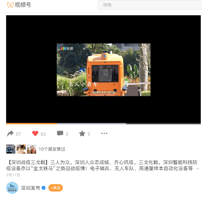 继续把无人驾驶技术投入到防疫抗疫的攻坚战中